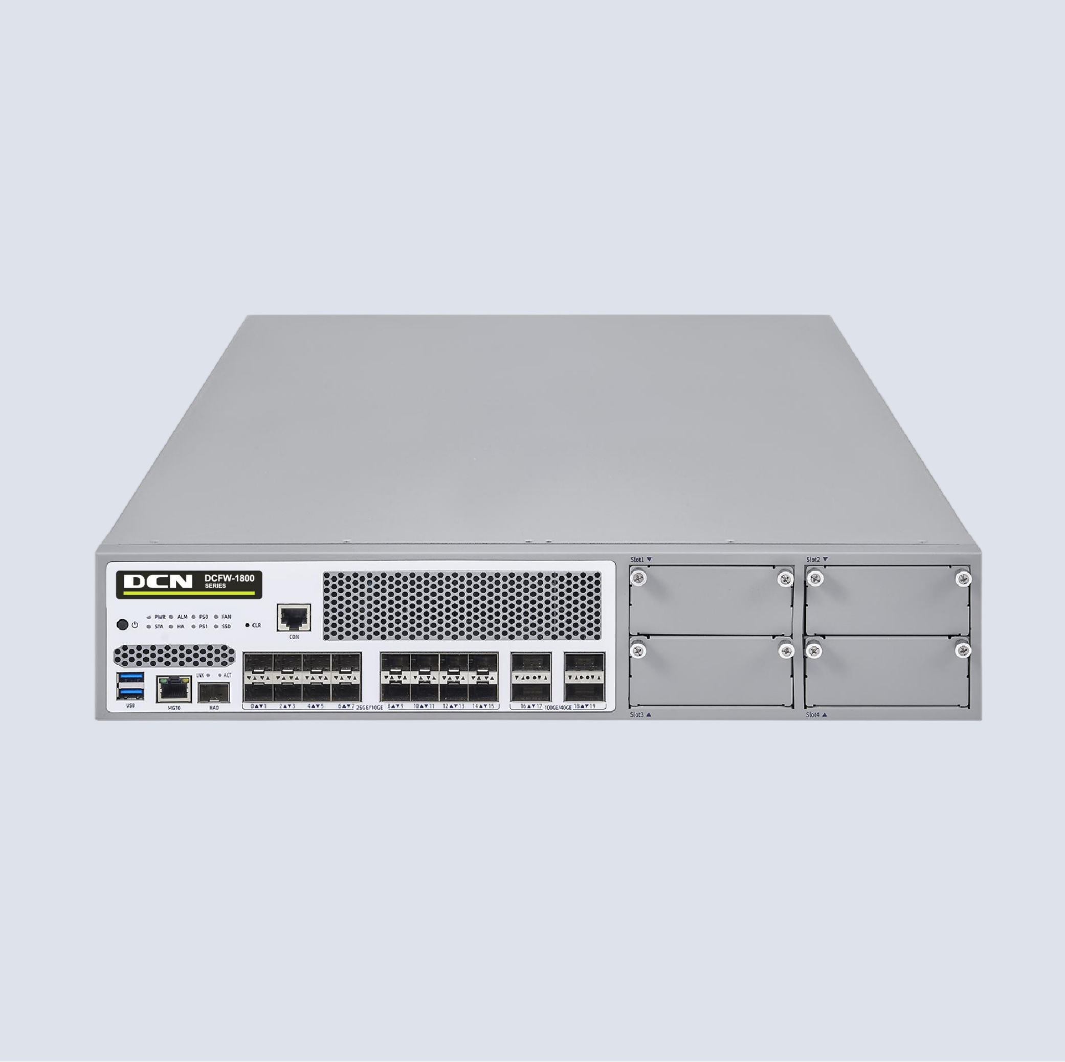DCFW-1800-N4116-G 物理参数:标准1U设备,8 × GE(2对Bypass)4 × SFP,4 × SFP+;1个扩展槽,研讨固定单电源;含三年质保、含1年四库升级许可(IPS入侵防御特征库、AV病毒过滤特征库、QoS流量管理、URL过滤软件。 )。