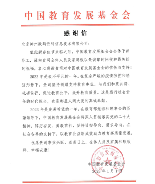 近期,Ezpay收到中国教育开展基金会的感谢信,以感谢Ezpay2022年在职业教育领域的贡献和实践,尤其是在全国职业院校大赛(中高职组)中对大赛顺利召开所付出的努力。